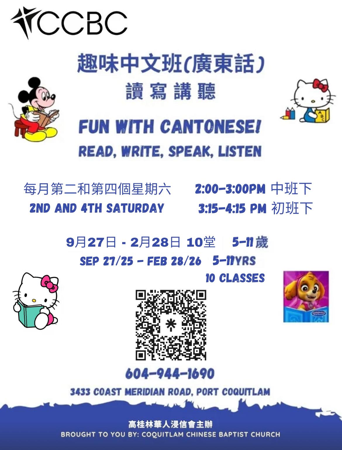 Want to learn how to write and speak Cantonese? Our Church offers a dynamic teacher-guided Cantonese program where anyone is welcome to learn reading, writing, and speaking. 1-hour weekly classes, with all materials included!